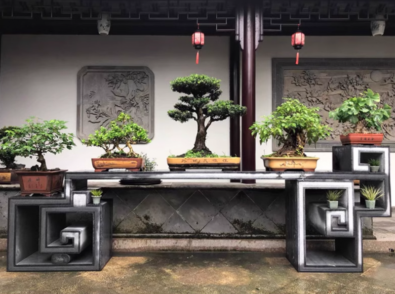 我后来了解到,这种石雕花架多用条石案几的形制设计,线条简洁却极有力量感,既能托起水旱盆景的层次美,又不会抢走植物本身的风头。放在庭院角落,一盆松意斜出,石台稳如山,画面立刻有了“静中有动”的意境。我自己选的是青石材质的花台,表面做了轻微打磨,保留了石头的粗粝感,搭配多肉或小叶罗汉松都特别出片。而且它不只是花架,更像是一个微型景观装置,让整个空间多了几分东方禅意。